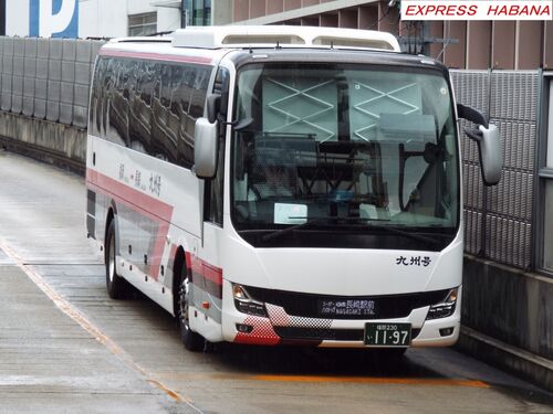 運行事業者:九州急行バス所属営業所:本社・福岡営業所登録番号:福岡230い11-97社内番号:不明形式:2TG-MS06GP/エアロエース製造(登録)年月:2019年シート配列:2-2シート座席定員:40人設備:後部トイレ用途:「九州号」…