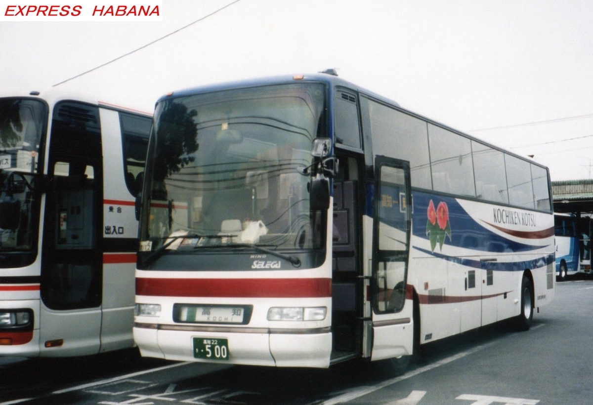 2013-06-05 高知県交通 高速バス 四国地方 運行事業者:高知県交通 ←「 四国高速バス 」所属営業所:高知営業所 ←「 本社・高松営業所? 」 登録番号:高知22き・500 ←「 香川22き・247 」社内番号:不明 形式:U-RU3FTAB/セレガ GD 製造(登録)年月:不明 シート配列:独立3列シート(最後部4列) 座席定員:29人 設備:中央トイレ・床下乗務員仮眠室用途:「龍馬エクスプレス」高知-岡山 撮影日:不明 撮影場所:両備バス岡山営業所