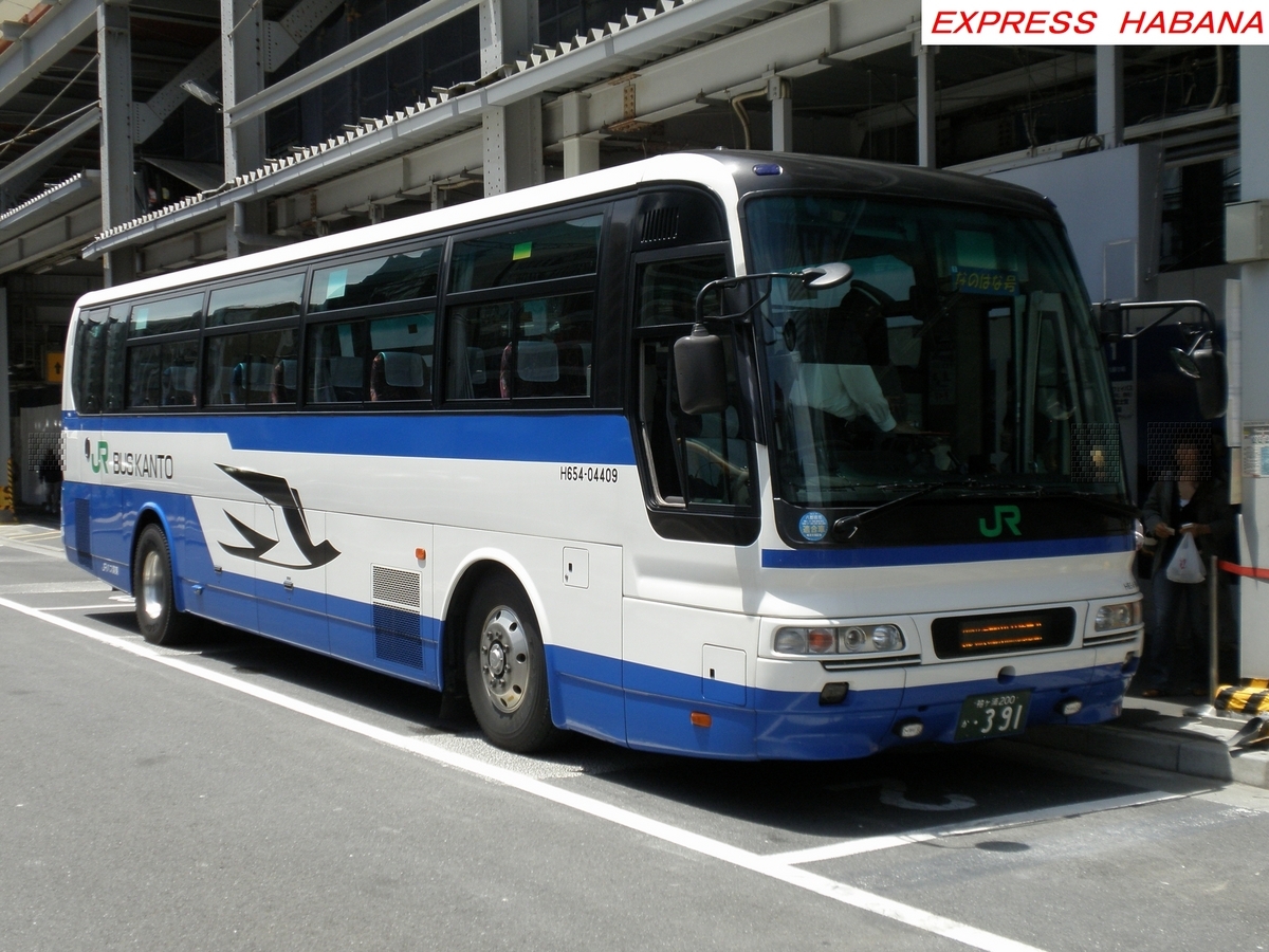 2013-06-18 JRバス関東 高速バス 関東地方 運行事業者:JRバス関東所属営業所:館山支店 登録番号:袖ヶ浦200か・391 社内番号:H654-04409 形式:KL-MS86MP/エアロバス 製造年月:2004年シート配列:2-2シート 座席定員:不明 設備:後部トイレ用途:「房総なのはな号」東京-館山・安房白浜 撮影日:2013年5月19日 撮影場所:東京駅八重洲南口